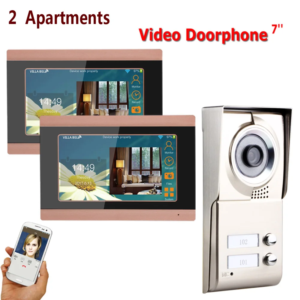 [[SPECIAL OFFERS]] 7inch Record wireless Wifi 2 Apartments Video Door Phone Intercom System IR CUT HD 1000TVL Camera Doorbell Camera with 2 button one of the best